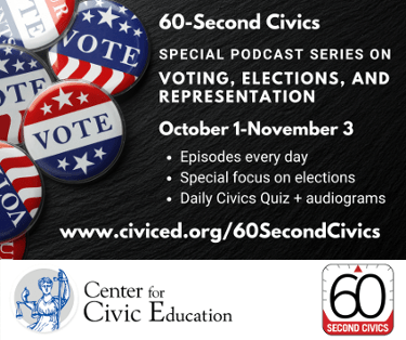 The Center for Civic Education has launched a nationwide initiative to focus its signature daily program, 60-Second Civics, on the right to vote in the weeks leading up to the November 3 national elections. Each day, 60-Second Civics will feature a podcast focused on voting, elections and representation and how those rights are protected under the Constitution.