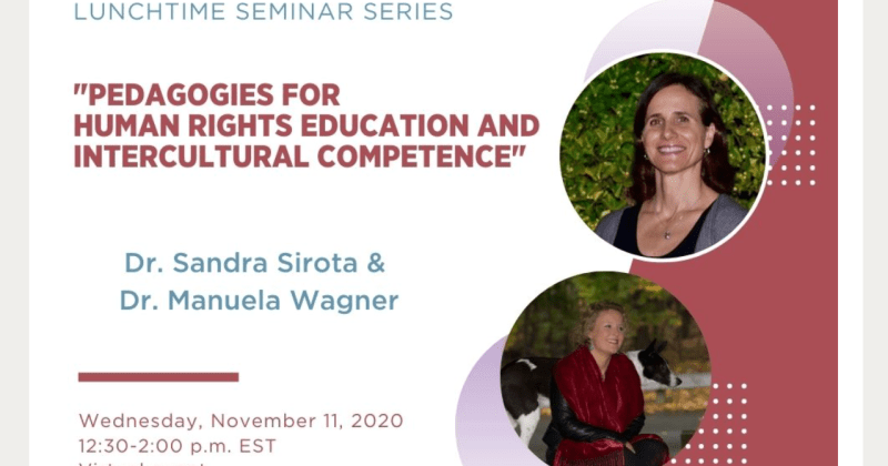 Please join the University of Connecticut’s’ Human Rights Institute for a lunchtime seminar with Sandra Sirota and Manuela Wagner entitled: “Pedagogies for Human Rights Education and Intercultural Competence.”