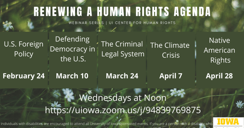 Mark your calendars! UICHR announces its spring webinar series: Renewing a Human Rights Agenda. All sessions are held on Wednesdays from 12:00 – 1:00 pm CST
