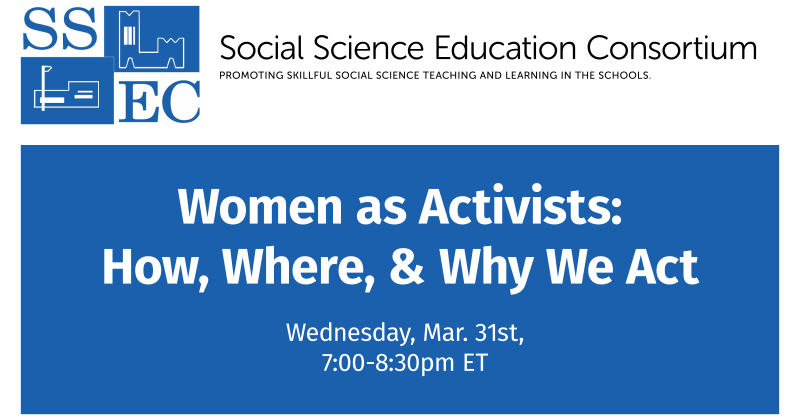 Join the Social Science Education Consortium as they engage with five recently published authors about their work with women in various educational arenas. Participants will hear from a distinguished panel of scholars on topics ranging from women in the social studies curriculum to feminist teachers, to how students engage with feminism as part of the curriculum. Featuring:
