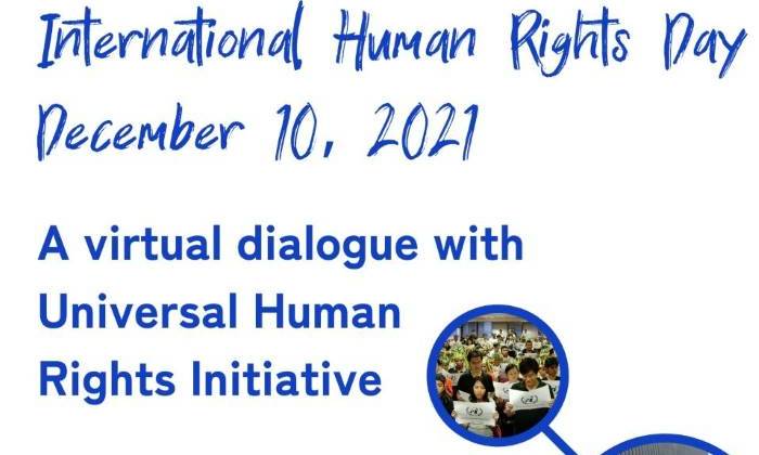 A Virtual Dialogue with Universal Human Rights Initiative by hreusaDecember 5, 2021December 13, 2021Leave a comment Join us on December 10, 2021 (10-11am PST/1-2am EST) to learn about global human rights and generate action-oriented dialogue with community members. Register here! Share Email a link to a friend (Opens in new window) Email Print (Opens in new window) Print Share on Facebook (Opens in new window) Facebook Share on LinkedIn (Opens in new window) LinkedIn Share on X (Opens in new window) X