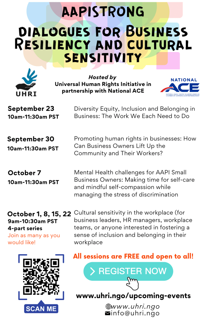 | Are you someone who owns a business, or wants to one day? Maybe you’re in a leadership position, or you work alongside businesses as a consultant. Do you want to strengthen diversity and equity in your circles, explore inclusion and belonging, and gain skills along the way? Register for the events below! Register for AAPISTRONG |