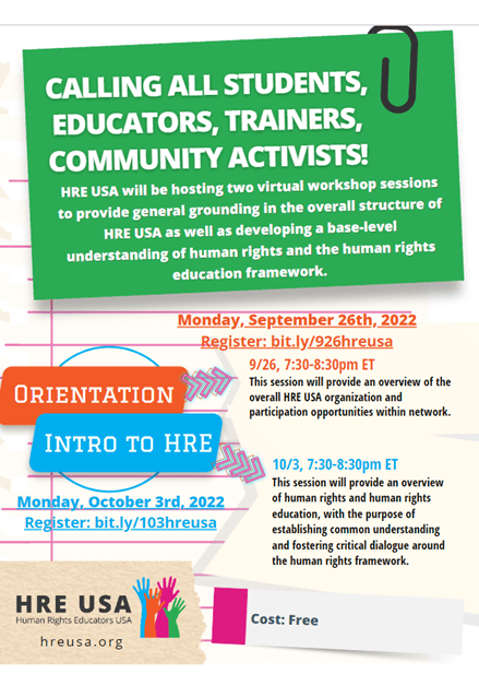 Don’t miss this opportunity! Fall 2022 HRE USA Members Orientation Sessions by hreusaSeptember 26, 2022September 26, 2022Leave a comment Monday, September 26th, 2022: Register: bit.ly/926hreusa Monday, October 3rd, 2022: Register: bit.ly/103hreusa Share Click to email a link to a friend (Opens in new window) Email Click to print (Opens in new window) Print Click to share on Facebook (Opens in new window) Facebook Click to share on LinkedIn (Opens in new window) LinkedIn Click to share on X (Opens in new window) X