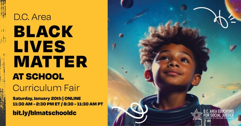 On Saturday, January 20, 2024, D.C. Area Educators for Social Justice will host a virtual curriculum fair featuring keynote speaker Enid Lee and workshops set to uplift the national demands based in the Black Lives Matter guiding principles that focus on improving the school experience for Black students.