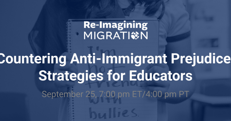 In the lead-up to the election, stereotypes, memes, and tropes about immigrants are proliferating, affecting the school environment, student well-being, and our communities at large. This webinar, hosted by Re-Imagining Migration, will equip educators with practical strategies to prevent, counter, and address anti-immigrant prejudice. Participants will learn strategies to lead insightful inquiry and discussion about the continuities and changes in anti-immigrant prejudice, critical media literacy strategies to analyze claims, and ways to respond to bias and bullying that can help foster empathy and understanding among students. By emphasizing the human impact of discrimination and leveraging best practices, educators can counter harmful stereotypes and promote a respectful and equitable learning environment for all students. Join us to build a community where every student feels valued and understood.
