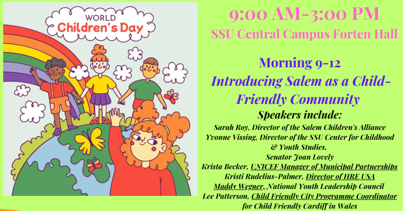 - Morning 9am–12pm: Introducing Salem as a Child-Friendly Community | SSU Central Campus Forten Hall