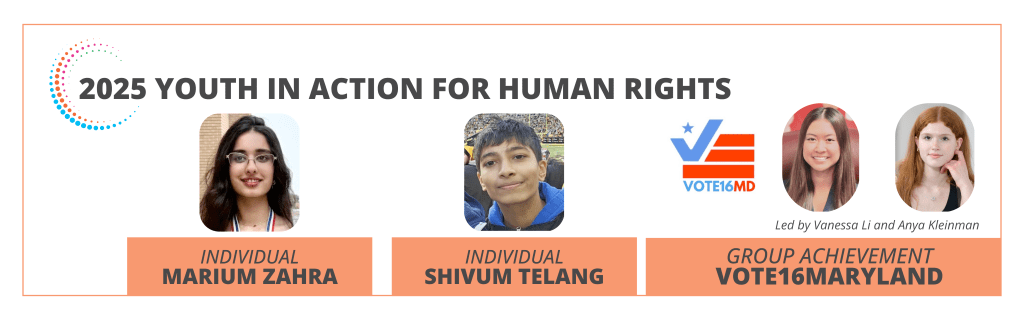 HRE USA is proud to announce the winners of this year’s 2025 Youth In Action for Human Rights Awards: