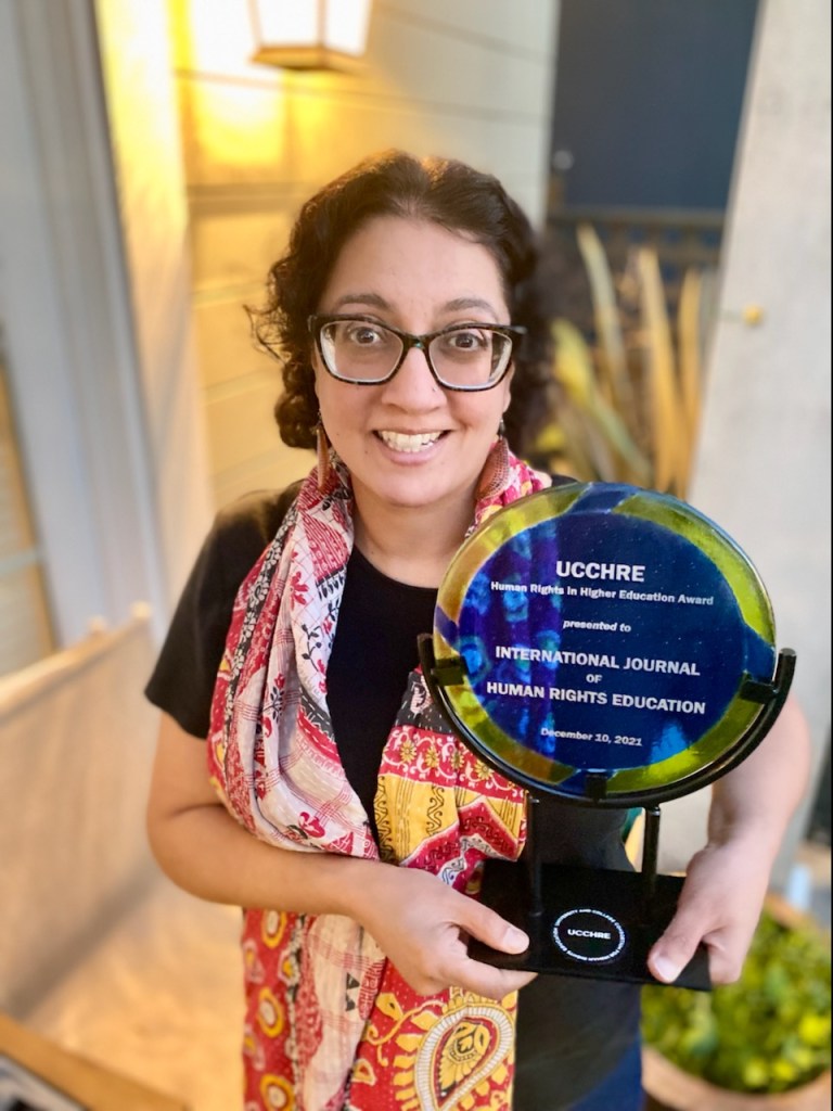 The recipients for 2021 are two distinguished journals in the field: the Human Rights Education Review and the International Journal of Human Rights Education. As editors-in-chief, Audrey Osler, Professor of Education at University of South-Eastern Norway, and Monisha Bajaj, Professor of International and Multicultural Education at the University of San Francisco, accept the award on behalf of their respective publications.