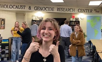 The 2023 group awards go to Kittatinny Regional High School Holocaust and Genocide Resource Center in Kittatinny, NJ. Inspired by their study of Elie Wiesel’s Night, students wanted to know more about the Holocaust and other genocides and to do something, especially to educate others in their community. The result was the Resource Center, a dedicated space adjacent to the school library. In addition to books, films, and other resources, the Center includes student-created visuals such as a world map showing where genocides have occurred, a “Wall of Hope,” where people can leave encouraging messages and quotations, and exhibits by local artists, including a Holocaust survivor. More than just a location for learning, the Resource Center serves as a place of empowerment where students come together to do the hard work of making a difference here and now. They host many fundraisers to give to the less fortunate in their community. For their immediate school population, they have developed a “Take What You Need” corner, stocked with school supplies, hygiene necessities, and food for students who may not be able to afford them.