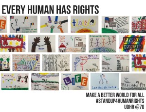 Description: Students were learning about the UDHR and were asked to visually interpret different parts of the document. This is a collection of the work of a group of students in an Amnesty International Club. It will be hung up around the school to bring awareness to the UDHR and encourage others to educate themselves.