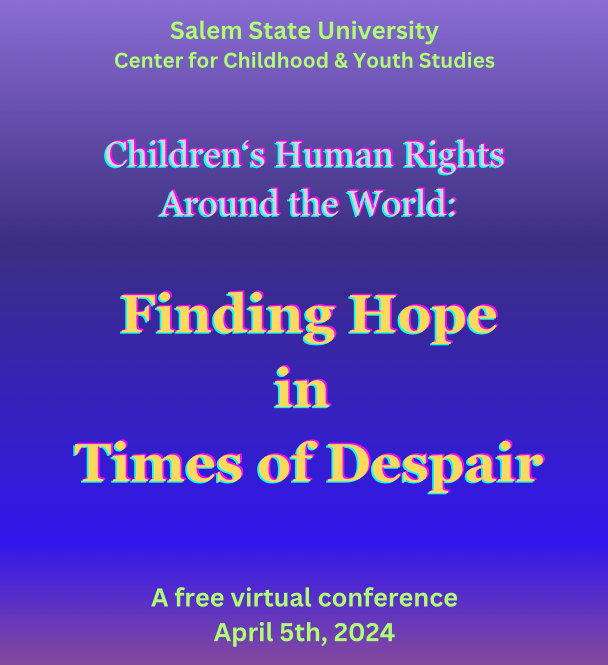 Around the world, young scholars are focusing their work on research that is designed to change the world for the better. The Fellow at Salem State University Center for Childhood and Youth Studies will share their cutting-edge ideas! This conference focuses on diversity and inclusion, particularly in families, schools, education, criminal justice, and in the challenges that refugee children face.