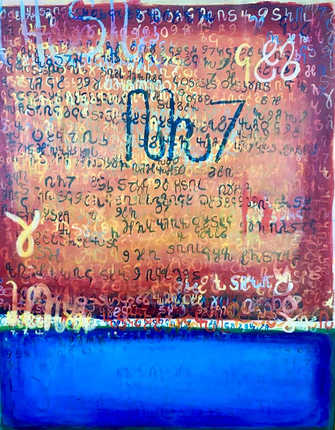 Description: This artwork uses the first article of The Universal Declaration of Human Rights. It is written in the Osmanya Somali transcript, a transcript that is now dead. Using an unrecognizable language compels us to see the historical shifts that has led Somalia into a civil war. Currently, Somalia is seemingly lacking human rights due to war. The title “Aisha” was the name of my grandmother, who spent months fleeing the war to eventually find refuge in America. Aisha passed away in 2016. It is my hope her journey pushes us to ensure a future of universal equality for human rights.